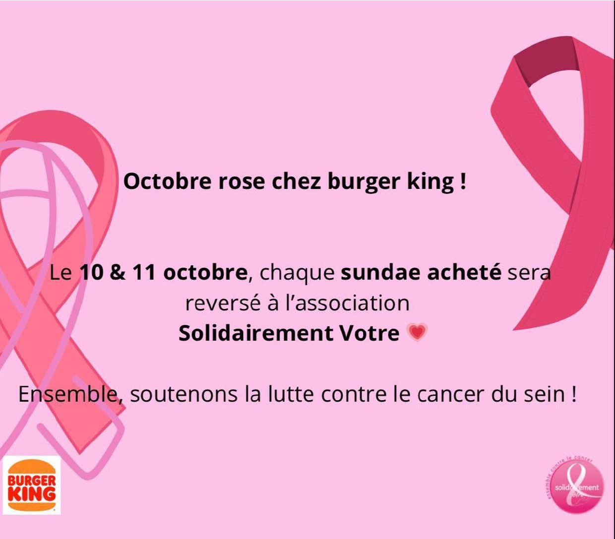 Octobre Rose chez Burger King à Chasse sur Rhône du Vendredi 10/10/2025 au Samedi 11/10/2025 !!