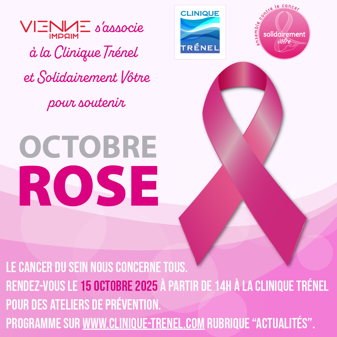Vienne Imprim s'associe à la Clinique Trenel et à Solidairement Vôtre pour soutenir Octobre Rose !!